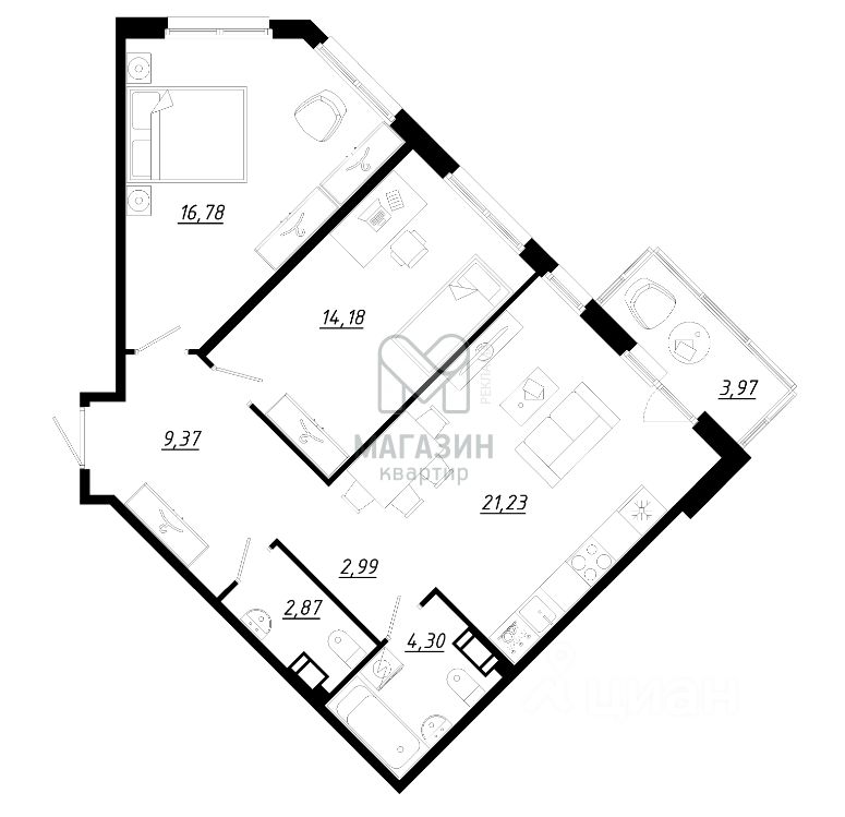 Изолированные комнаты обеспечат вам личное пространство, в то время как большая кухня площадью 21 м² с увеличенной лоджией станет идеальным местом для кулинарных экспериментов и семейных ужинов.