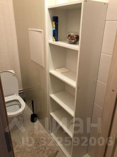 Туалет со встроенным шкафчиком для хранения хозяйственных принадлежностей.