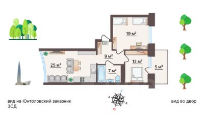 2. 2-сторонняя панировка. Просторная авторская детская, в которой хватит места и для игр, и для занятий спортом, и для отдыха. Уютная родительская спальня. Большая кухня-гостиная с панорамными окнами в пол на Юнтоловский заказник и Лахта центр станет местом притяжения для совместных семейных ужинов. Окна обеих комнат выходят во двор, и вкупе с высоким 15-м этажом шум отсутствует. Просторный коридор, с/у совмещённый. Балкон не застеклён.