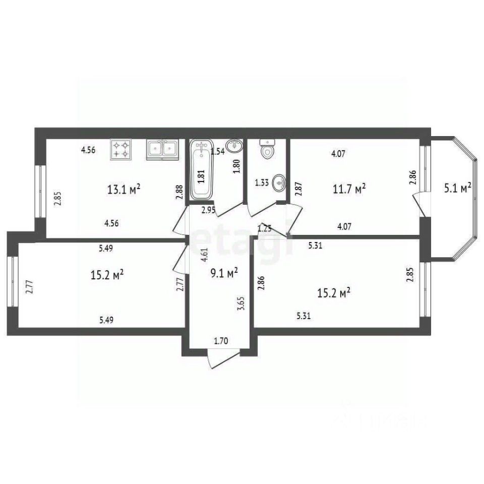 Продуманная планировка: три изолированные комнаты, просторная кухня, раздельный санузел и прихожая с практичной гардеробной системой.