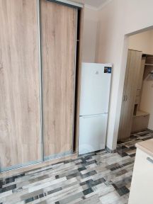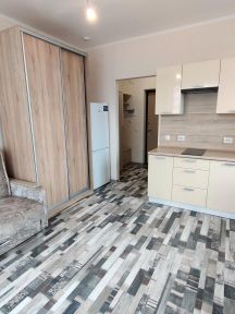 В квартире сделан дизайнерский ремонт, который придаёт пространству уникальный стиль и уют. Пространство студии грамотно зонировано, что позволяет максимально использовать жилую площадь в 15 кв. м. Кухня занимает 2 кв. м и оборудована всем необходимым для комфортного приготовления пищи. Совмещенный санузел выполнен в современном стиле. Также есть лоджия, где можно оборудовать зону отдыха или хранения.