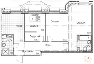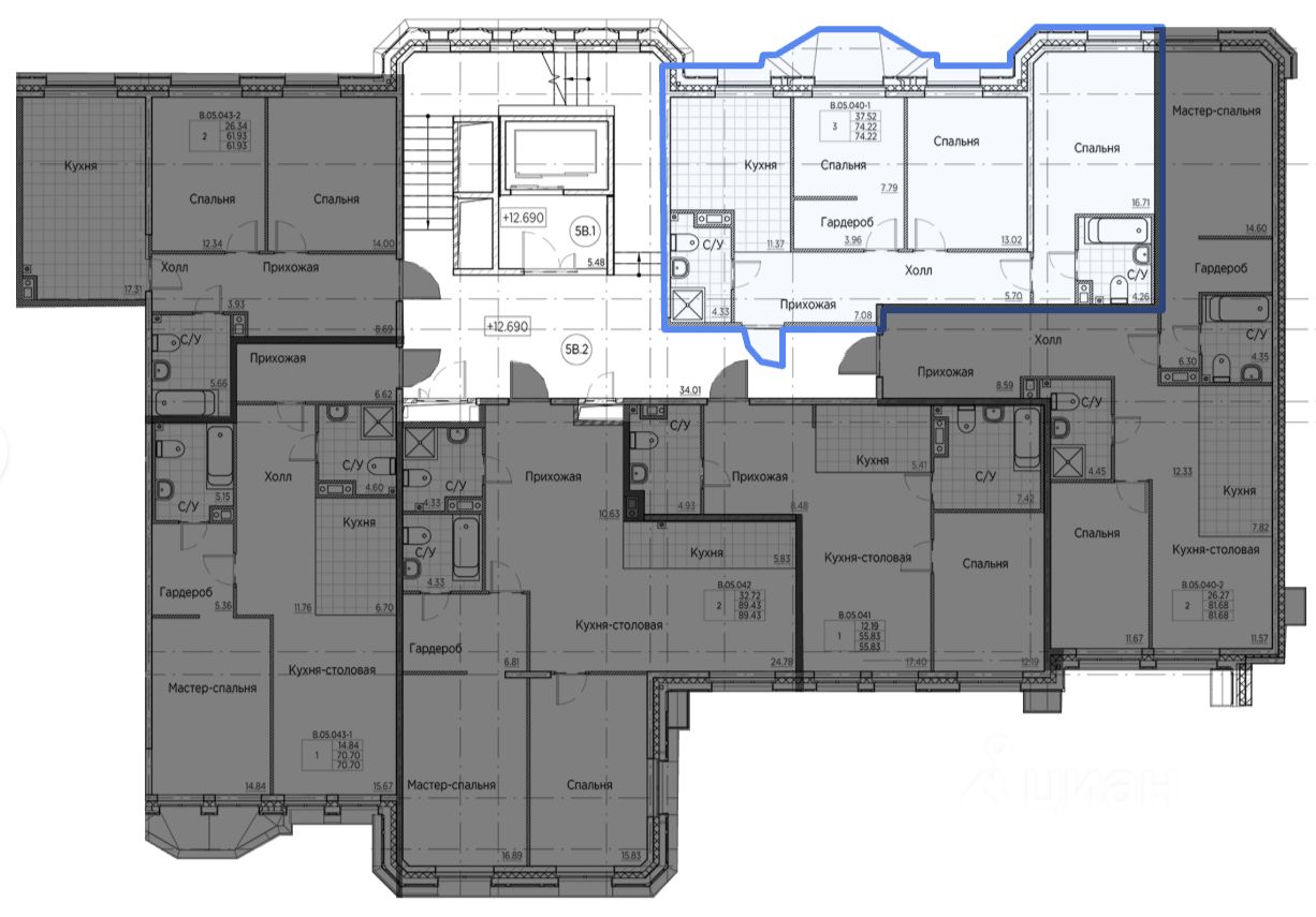 Односторонняя планировка с 3-мя спальнями и потолками 2,8 м. Квартира готова для воплощения Ваших дизайн-проектов.