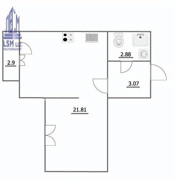Видовая квартира с удобной планировкой. Кухня и комната.