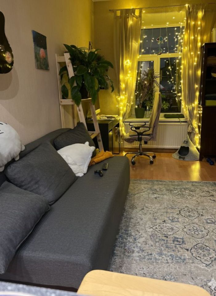 Все окна выходят в зеленый сквер с современной детской площадкой, на юг, в сторону реки Фонтанки; очень приятный вид на тихую улицу Лабутина, Троицкий Собор и гостиницу "Азимут" (бывшая "Советская").