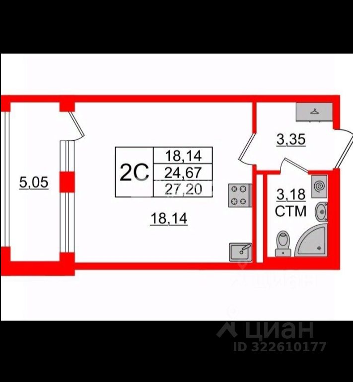 В продаже квартира студия по переуступке от физичиского лица в строящемся ЖК "Дворцовый фасад" г. Стрельна.