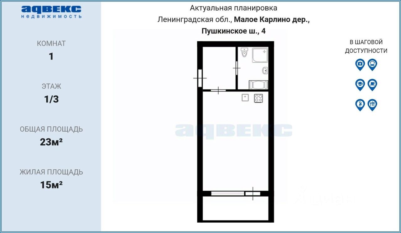 В шаговой доступности находятся продуктовые магазины, аптеки и кафе. В пешей доступности находится крупный конно-спортивный комплекс. Малое Карлино - это ближайший пригород Санкт-Петербурга. Неподалеку остановка общественного транспорта — всего в нескольких минутах, а до аэропорта Пулково 20 минут на автомобиле.