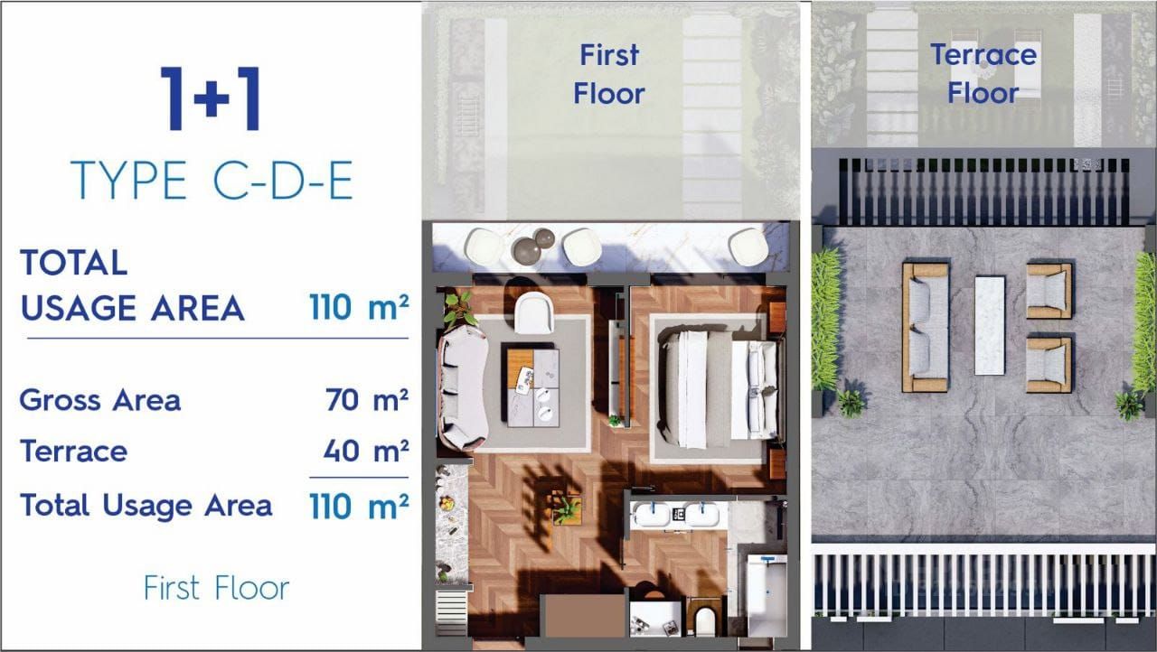 Комплекс Seafront Iskele также предлагает обширную инфраструктуру, включая генератор, автоматические входные двери, частные сады, террасы, парковку системы очистки, кондиционирования и охраны территории. Поэтажные планы и дизайн квартир были разработаны с учетом современных стандартов и комфорта
