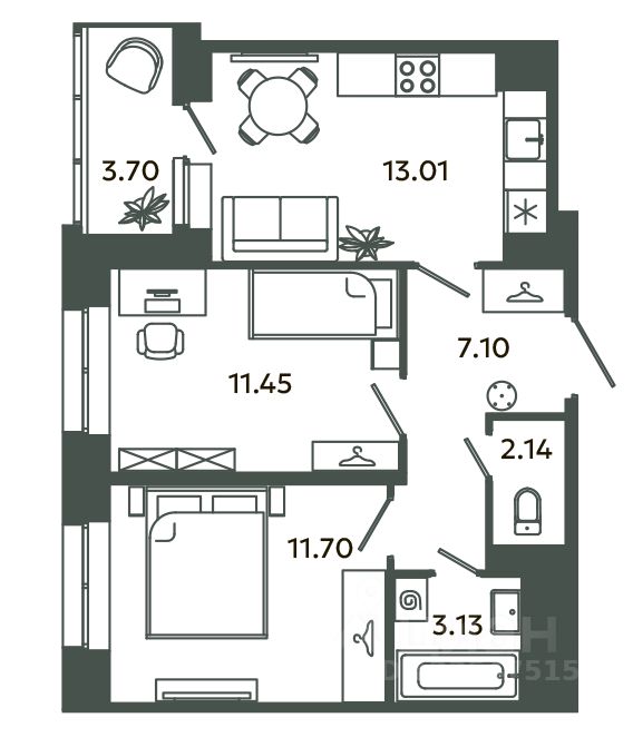 Квартира площадью 50,38 м² с продуманной планировкой: просторная кухня-гостиная, удобная ниша под гардеробную и качественная чистовая отделка "под ключ". Вам останется только завезти мебель и заселиться!