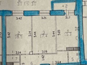 Кухня 15,8 м, комнаты 17 м и 18,5 м.