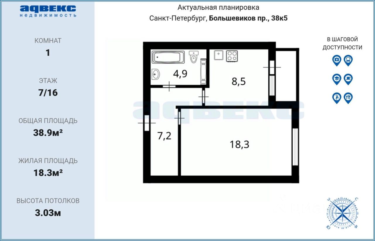 18,3 м²