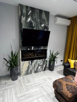 панель из натурального мрамора от Пола до потолка со встроенным электрическим камином