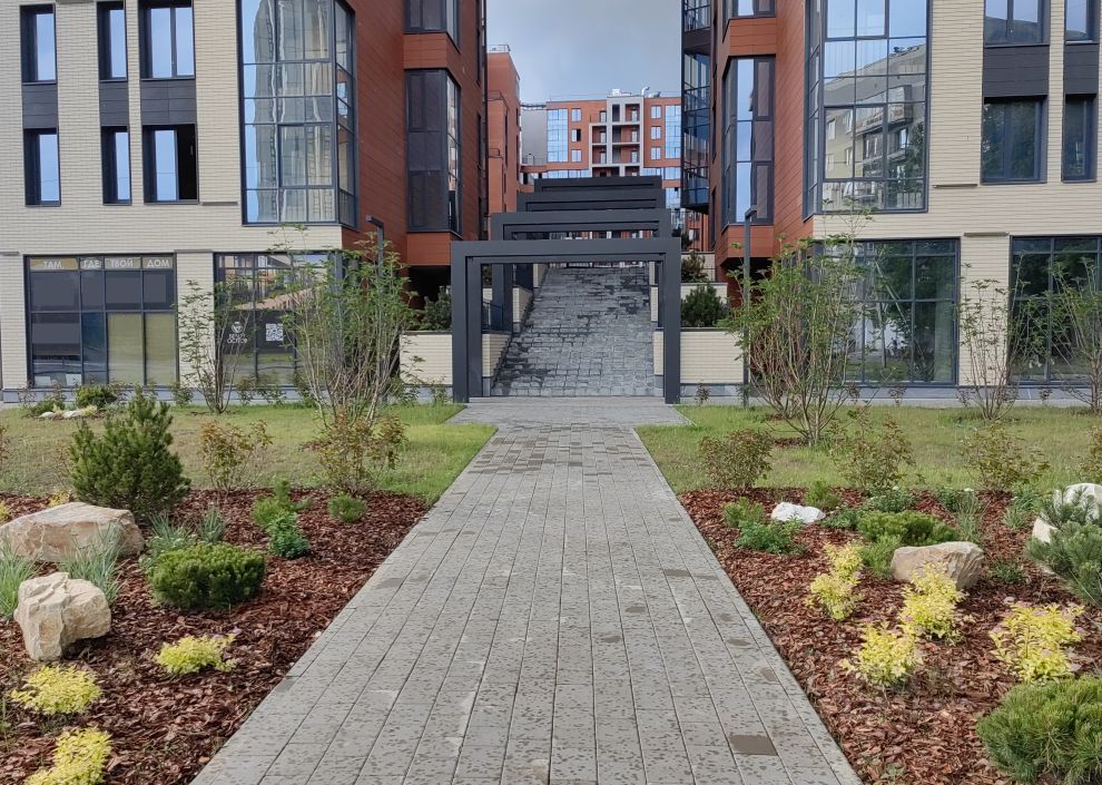 Проект с закрытым двором без машин, ландшафтный экодизайн, места для отдыха и общения с соседями. Забота о безопасности — от системы охраны до видеонаблюдения. Здесь ваш ребенок будет гулять под присмотром, а вы сможете наслаждаться моментами спокойствия.