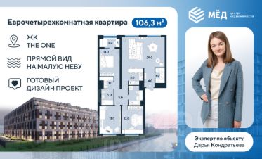 Видовая еврочетырёхкомнатная квapтиpа в ЖК The One на Петровском острове в Петроградском рaйоне