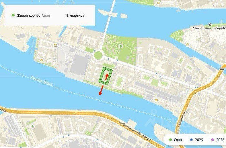 Двухсторонняя планировка, вид из окон кухни-гостиной и мастер спальни на Неву, детские спальни - во двор