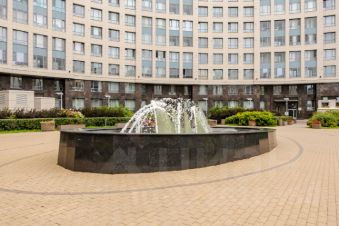 Двор с фонтаном и площадкой для детей - строго без машин.