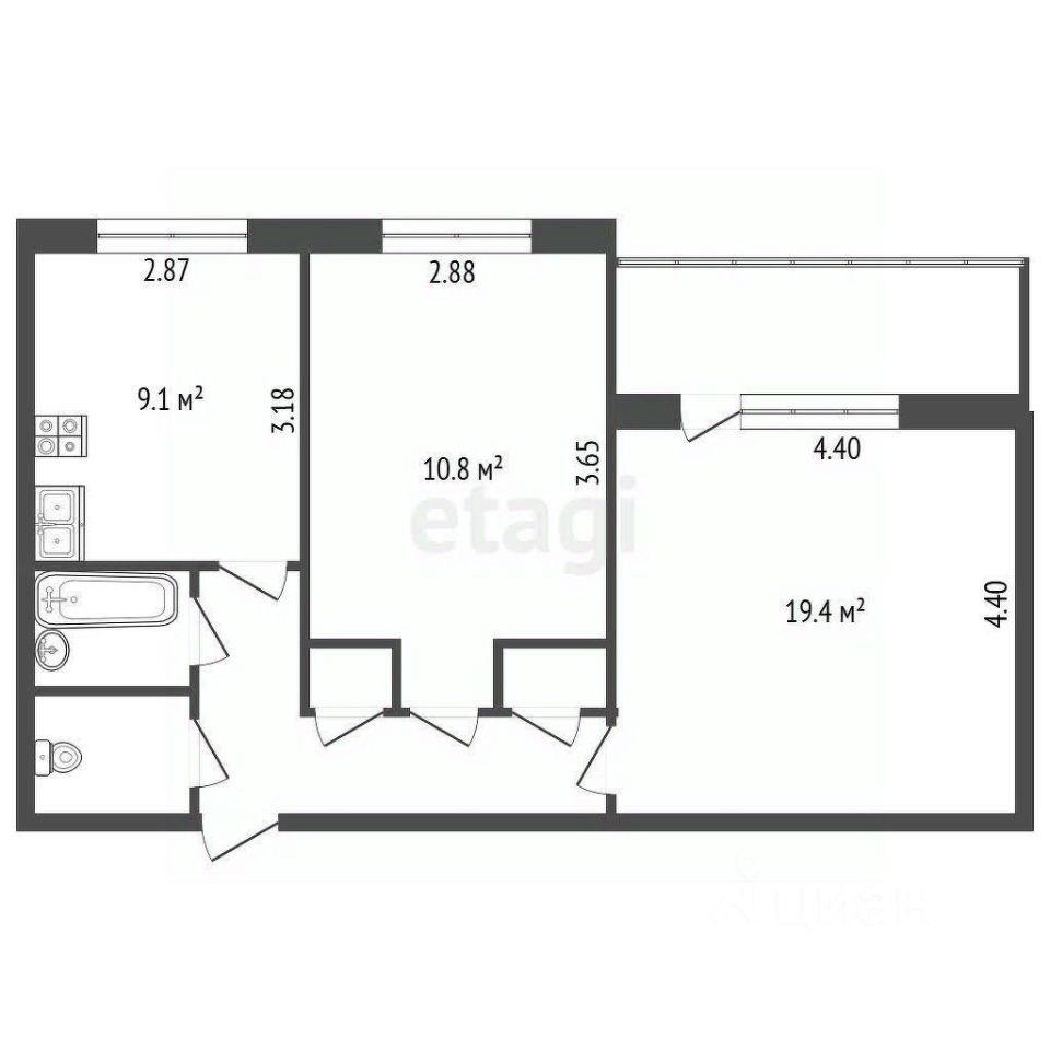• Гостиная (19,4 кв.м): просторная и светлая, с выходом на застекленный балкон прекрасное место для отдыха и приема гостей.