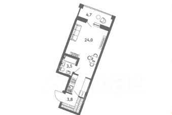 Просторная студия на высоком первом этаже в новом жилом комплексе на Васильевском острове в пешей доступности от Финского залива.