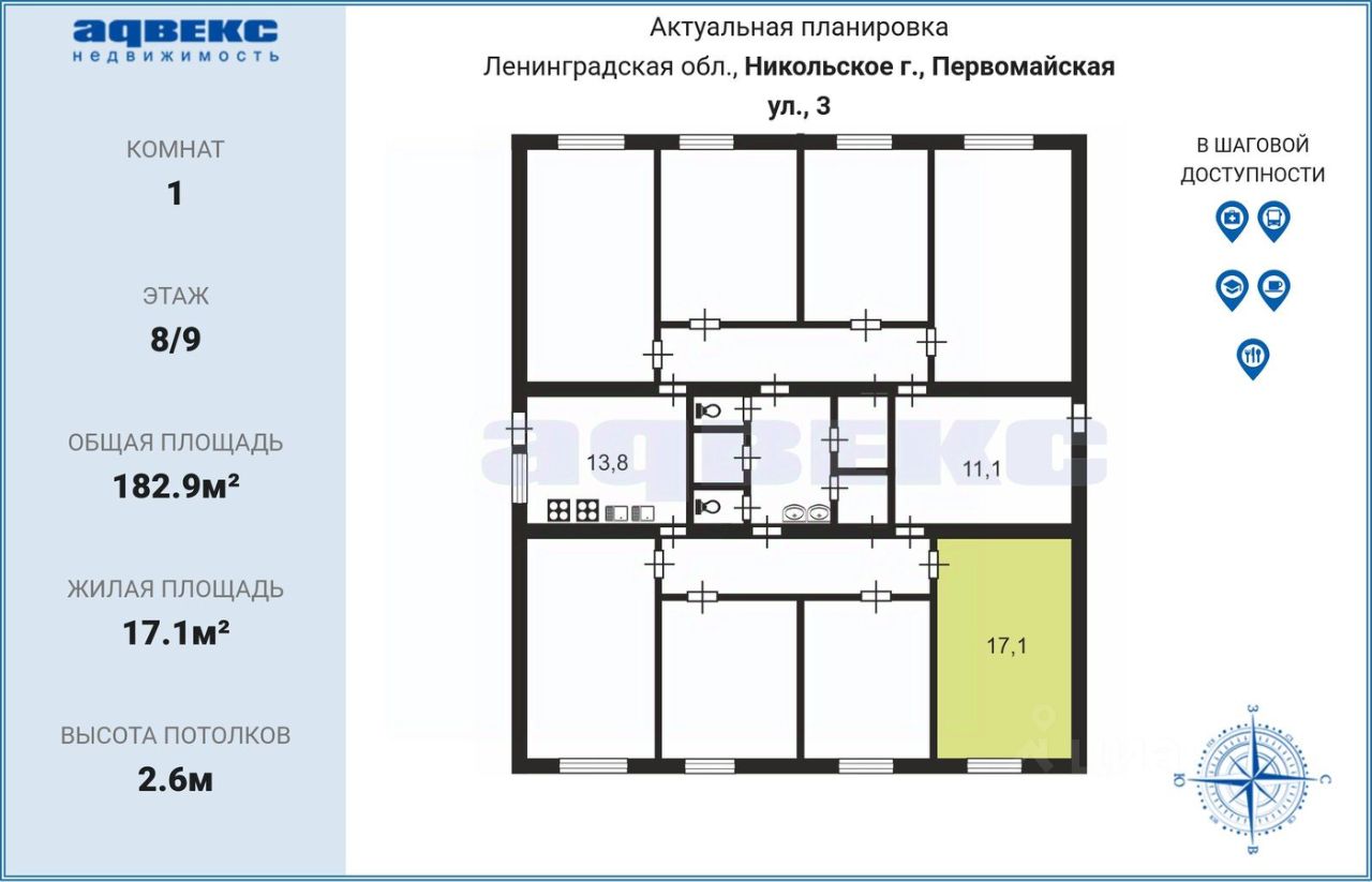 В прямой продаже просторная светлая комната по адресу г. Никольское, ул. Первомайская, д. 3