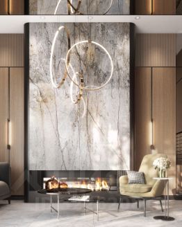 -Дизайнерская отделка гранд-лобби с биокамином и золотыми элементами