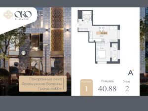 Продается однокомнатная квартира с отделкой в ЖК "ORO by Akvilon" на 2 этаже. Общая площадь: 40.88 кв.м., жилая: 11.26 кв.м., площадь просторной кухни-столовой: 18.62 кв.м. Квартира угловая, очень светлая, естественная вентиляция при открытии окон. В квартире одна лоджия, один совмещенный санузел. Высота потолков 2.85 м.