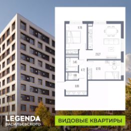 Просторная двухкомнатная квартира с предчистовой отделкой в ЖК "LEGENDA Васильевского" на 10 этаже. Общая площадь: 63.84 кв.м., жилая: 24.48 кв.м., площадь просторной кухни-столовой: 23.27 кв.м. Квартира угловая, идеально подойдет любителям тишины и панорамных видов. В квартире один раздельный санузел. Высота потолков 2.7 м.