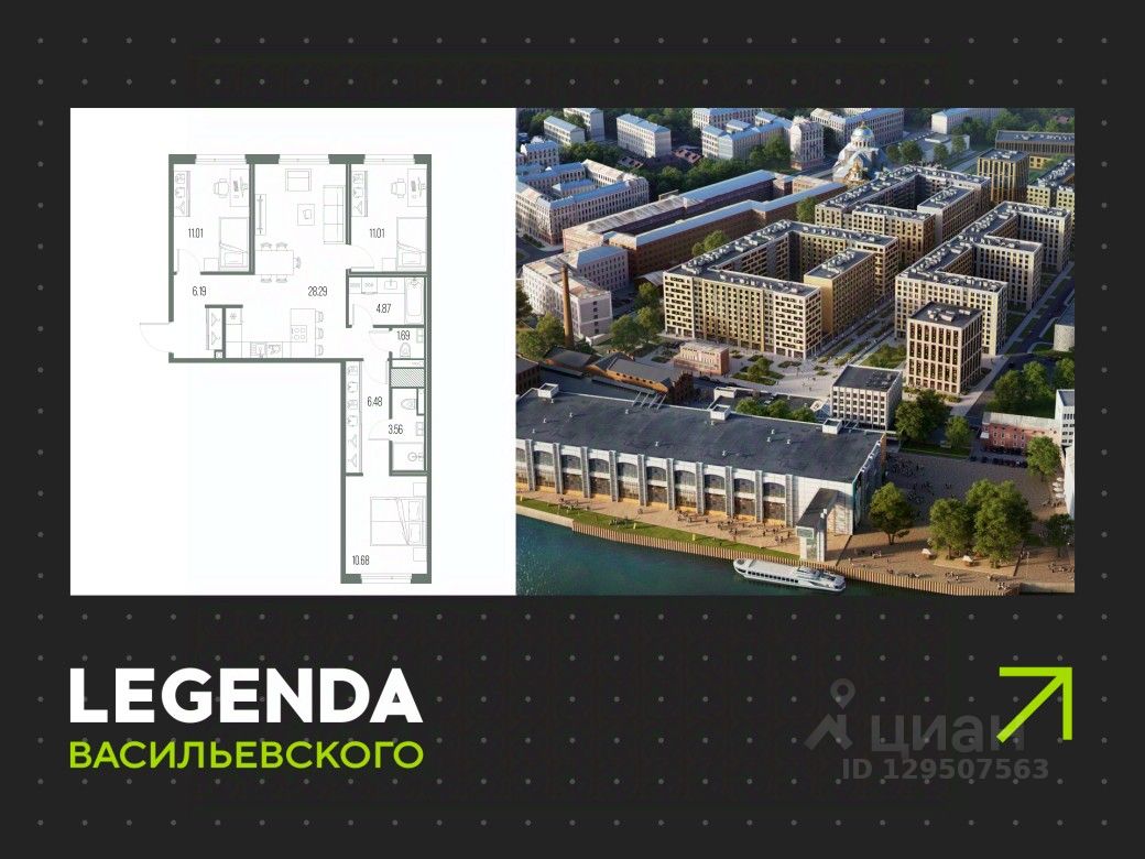 Продается 3-комн. квартира с предчистовой отделкой в ЖК "LEGENDA Васильевского" на 2 этаже. Общая площадь: 83.78 кв.м., жилая: 32.7 кв.м., площадь просторной кухни-столовой: 28.29 кв.м. Квартира - распашонка, без проходных комнат, окна выходят на paзные стороны дома. В квартире два совмещенных санузла. Высота потолков 2.7 м.