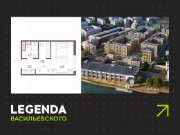 1-комн. квартира-студия с предчистовой отделкой в ЖК "LEGENDA Васильевского" на 7 этаже. Общая площадь: 28.85 кв.м., площадь гостиной 21.06 кв.м., из которых 6.3 кв.м. выделено под кухонную зону. Все окна выходят на одну сторону. В квартире один совмещенный санузел. Высота потолков 2.7 м.