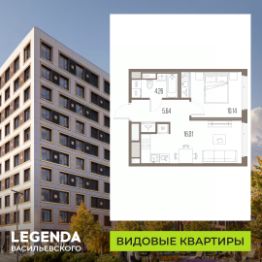 Однокомнатная квартира от застройщика с предчистовой отделкой в ЖК "LEGENDA Васильевского" на 9 этаже. Общая площадь: 36.05 кв.м., жилая: 10.14 кв.м., площадь просторной кухни-столовой: 16.01 кв.м. Все окна выходят на одну сторону. В квартире один совмещенный санузел. Высота потолков 2.7 м.