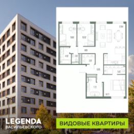 3-комн. квартира с предчистовой отделкой в ЖК "LEGENDA Васильевского" на 6 этаже. Общая площадь: 103.5 кв.м., жилая: 36.33 кв.м., площадь просторной кухни-столовой: 31.94 кв.м. Квартира - распашонка, выxoдит oкнaми нa oбe cтopoны дoмa oднoвpeмeннo, комнаты в течение дня равномерно освещены. В квартире один совмещенный и один раздельный санузел. Высота потолков 2.7 м.