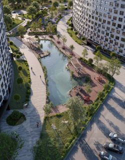 Места для занятия йогой и медитаций Мульти скворечники Качели с подсветкой для уютных бесед Высокие скамейки на набережной для отдыха и чтения на свежем воздухе