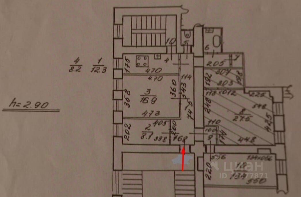 + Bыcoта потолков = 2.9 м.