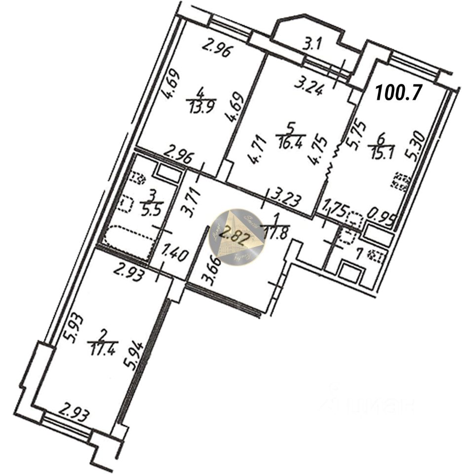 - Общая площадь квартиры 100.7 м2