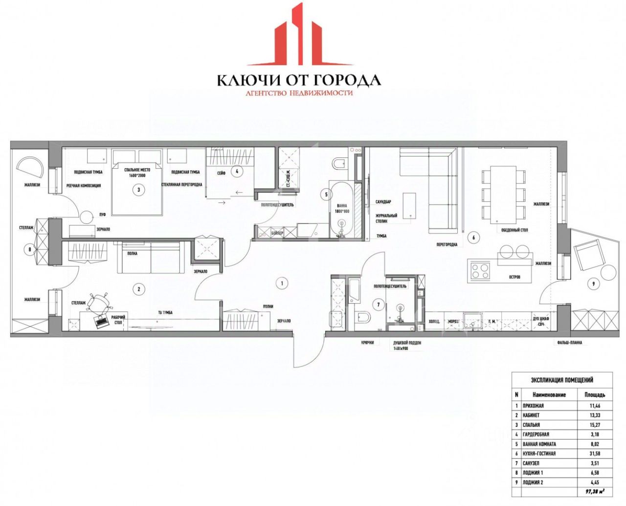 Комфорт и безопасность: 7ступенчатая очистка воды (механика, минерализация, УФ), кондиционер и приточка с фильтрацией/обеззараживанием (в спальне), защита от протечек, охранная система с датчиками движения, защита от перепадов напряжения.