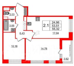 Продается по переуступке уютная двухкомнатная квартира с ремонтом, площадью 55,32 кв.м., на 6 этаже. Есть лоджия, высокие потолки 2,77 м.
