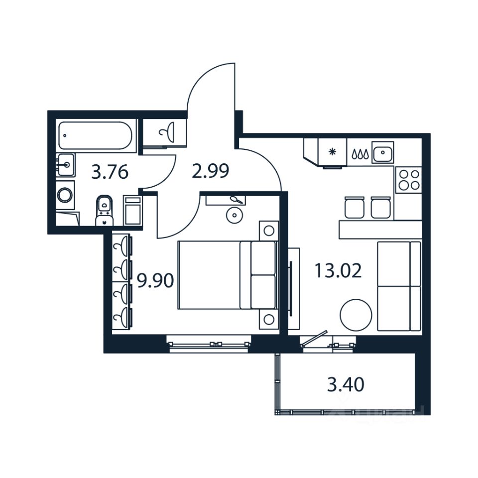 Прямая продажа от застройщика! Готовая Евро-двушка 29.1 кв.м с кухней 13.02 кв.м с предчистовой отделкой на 5 этаже в сданном ЖК "Полис Лаврики".