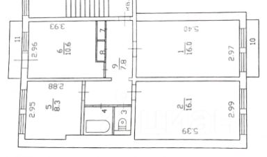 Квартира расположена на 3 м этаже 5ти этажного крупнопанельного дома. Общая площадь 63,6 кв.м, жилая площадь 42,7 кв.м (16,1+16,0+10,6 кв.м. изолированные), кухня 8,3 кв.м.