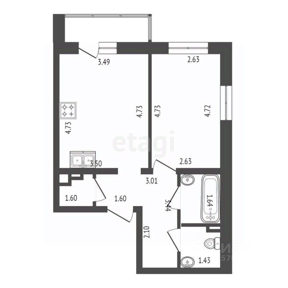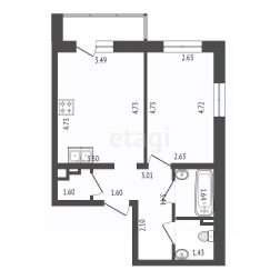 - ЕВРОДВУХКОМНАТНАЯ квартира, общая площадь составляет 42,3 м2 c ХОРОШЕЙ чистовой отделкой от Застройщика;