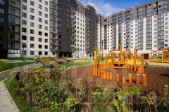 - Комплекс обладает удобной транспортной доступностью (выезд на КАД 18 мин), а также наличием детских и спортивных площадок в скандинавском стиле;