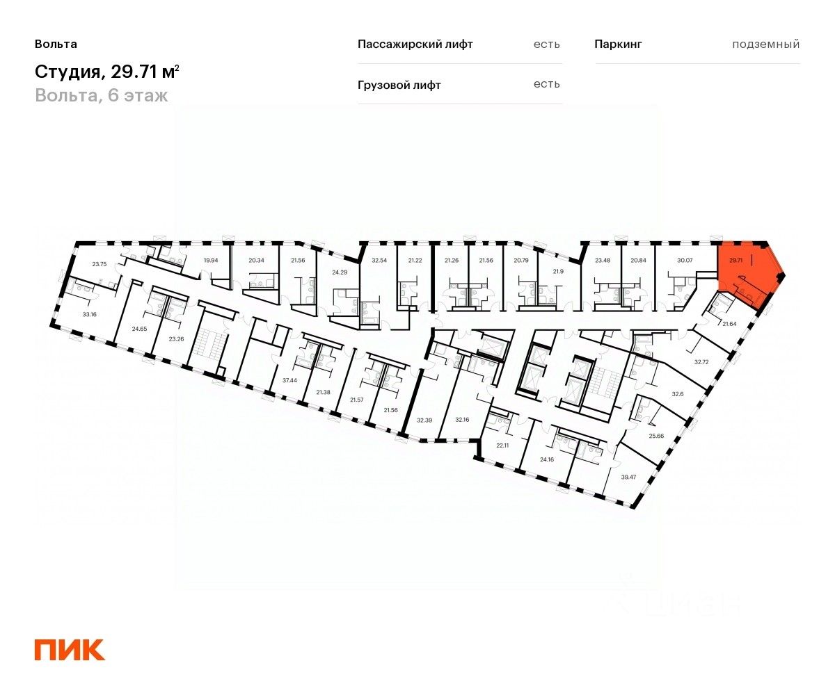 Продаются апартаменты-студия площадью 29,71 кв.м на 6 этаже 15 этажного дома (Вольта, Секция 1) проекта ПИК Вольта.