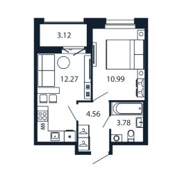 Прямая продажа от застройщика! Готовая Евро-двушка 30.8 кв.м с кухней 12.27 кв.м с чистовой отделкой на 9 этаже в сданном ЖК "Полис Новоселье".