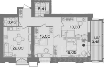 Квартира без отделки, но в этом её прелесть: чистый лист, на котором дизайнер напишет вашу историю — в подарок идёт индивидуальный проект интерьера.