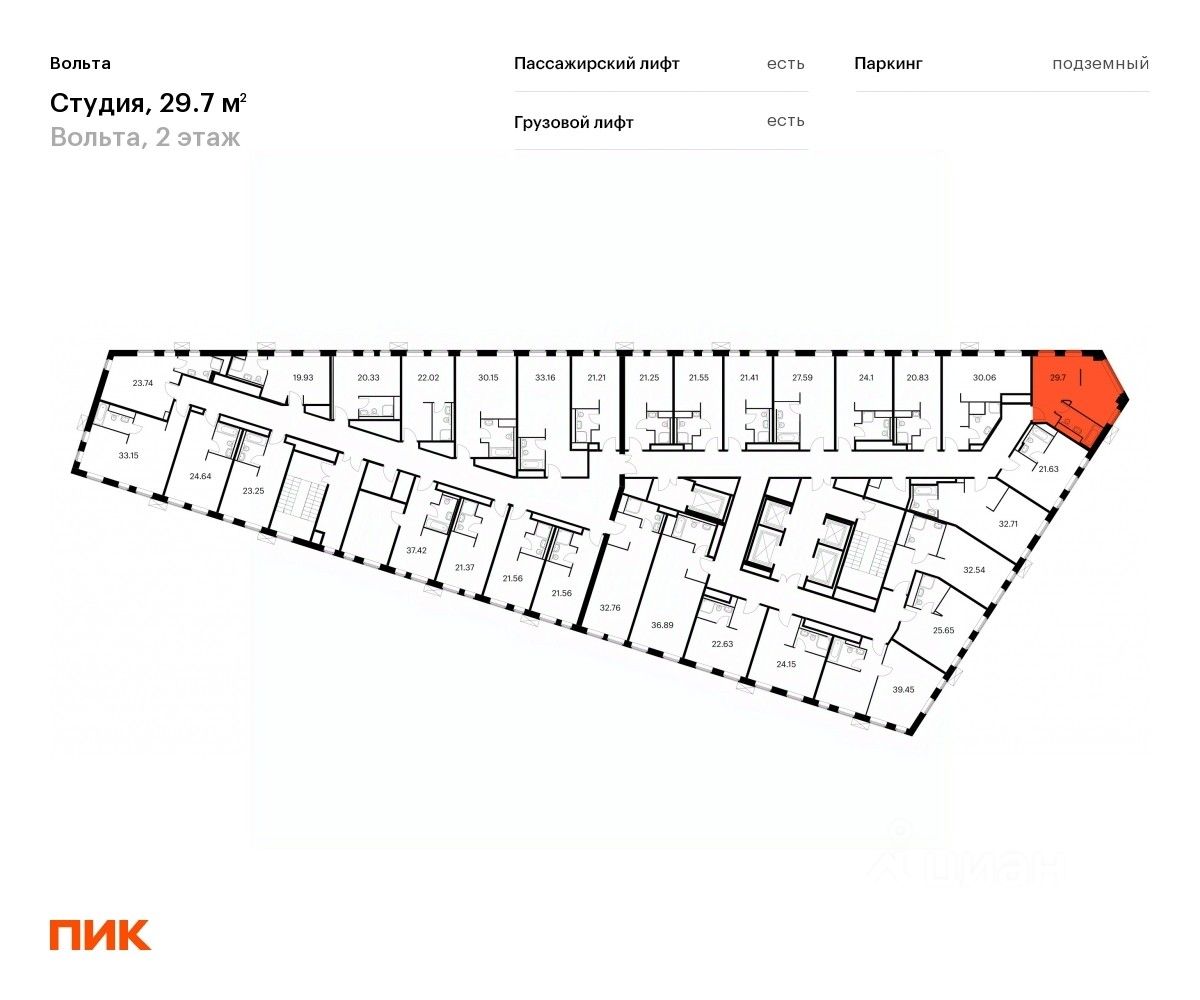 Продаются апартаменты-студия площадью 29,7 кв.м на 2 этаже 15 этажного дома (Вольта, Секция 1) проекта ПИК Вольта.