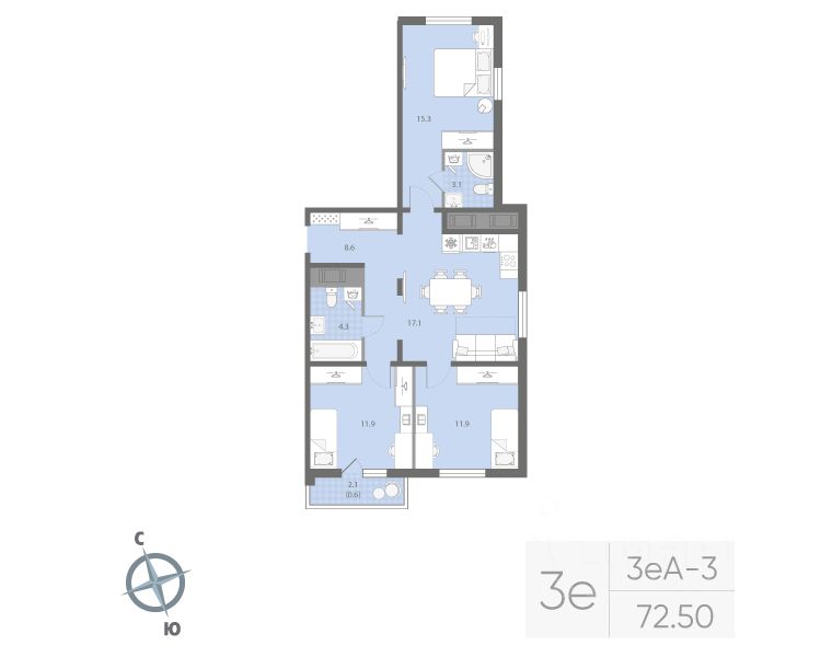 Продается 3-комнатная квартира в ЖК "Дыбенко Парк" на 9 этаже. Общая площадь составляет 72.80 кв. м. Квартира с чистовой отделкой. Жилой комплекс располагается по адресу Санкт-Петербург, проспект Товарищеский.
