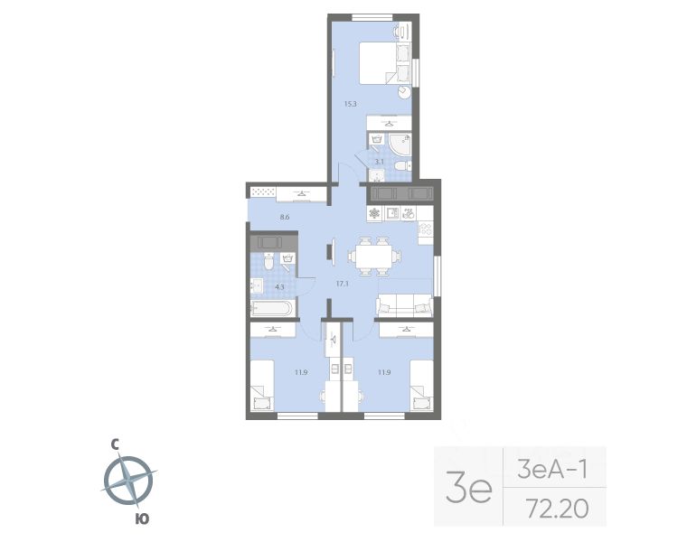 Продается 3-комнатная квартира в ЖК "Дыбенко Парк" на 22 этаже. Общая площадь составляет 72.20 кв. м. Квартира с чистовой отделкой. Жилой комплекс располагается по адресу Санкт-Петербург, проспект Товарищеский.