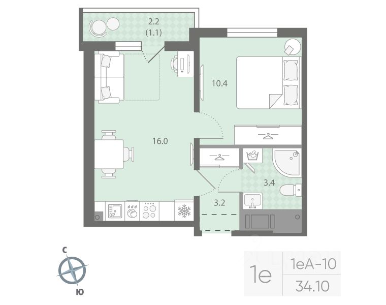 Продается 1-комнатная квартира в ЖК "Дыбенко Парк" на 7 этаже. Общая площадь составляет 34.10 кв. м. Квартира с чистовой отделкой. Жилой комплекс располагается по адресу Санкт-Петербург, проспект Товарищеский.