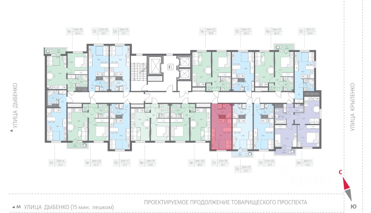 Продается студия в ЖК "Дыбенко Парк" на 6 этаже. Общая площадь составляет 21.10 кв. м. Квартира с чистовой отделкой. Жилой комплекс располагается по адресу Санкт-Петербург, проспект Товарищеский.