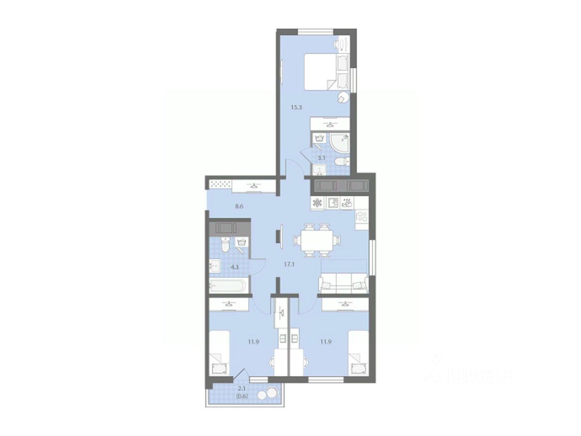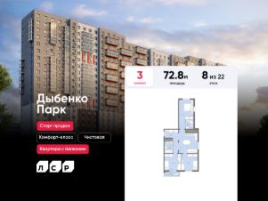 Продается 3-комнатная квартира в ЖК "Дыбенко Парк" на 8 этаже. Общая площадь составляет 72.80 кв. м. Квартира с чистовой отделкой. Жилой комплекс располагается по адресу Санкт-Петербург, проспект Товарищеский.
