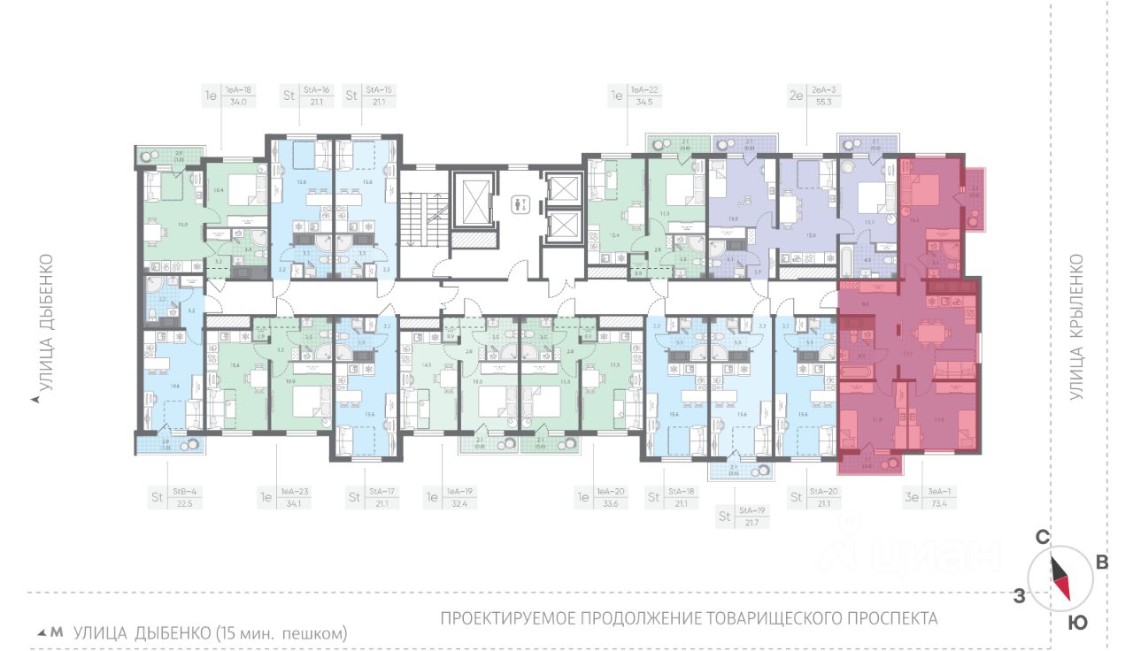 Продается 3-комнатная квартира в ЖК "Дыбенко Парк" на 15 этаже. Общая площадь составляет 73.40 кв. м. Квартира с чистовой отделкой. Жилой комплекс располагается по адресу Санкт-Петербург, проспект Товарищеский.