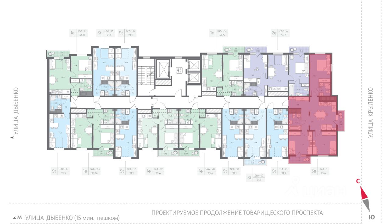 Новый проект комфорт плюс-класса, расположенный в пешей доступности от станции метро "Улица Дыбенко".