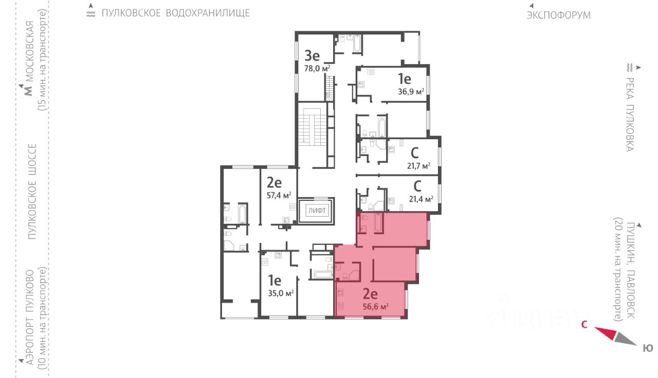 Продается 2-комнатная квартира в ЖК "Пулково Лейк" на 4 этаже. Общая площадь составляет 56.60 кв. м. Квартира с чистовой отделкой. Жилой комплекс "Пулково Лейк" располагается по адресу Санкт-Петербург, Московский.